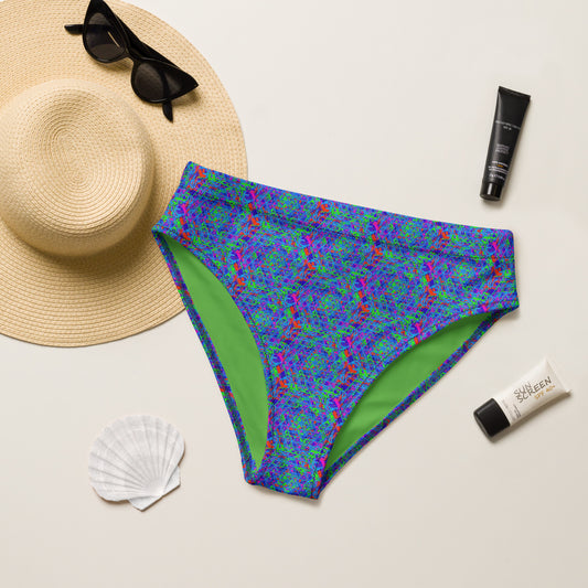 Vivid purple and indigo geometric pattern recycled high waisted bikini bottom