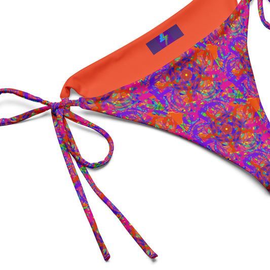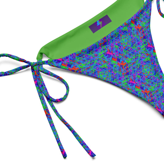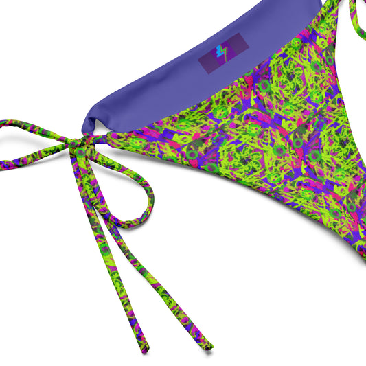 Neon yellowish green and purple geometric pattern recycled classic string bikini bottom