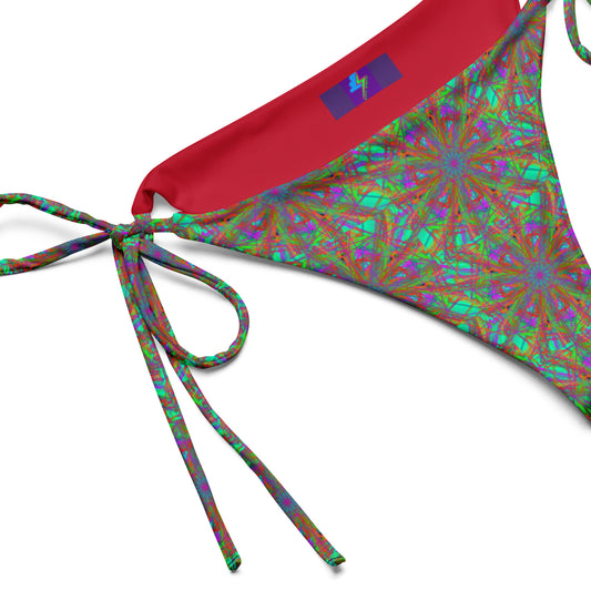 Red geometric star mandala pattern recycled classic string bikini bottom
