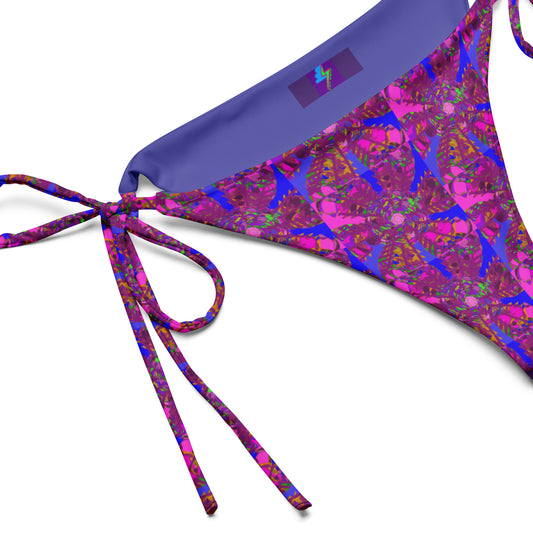 Vivid purple and indigo geometric pattern recycled classic string bikini bottom