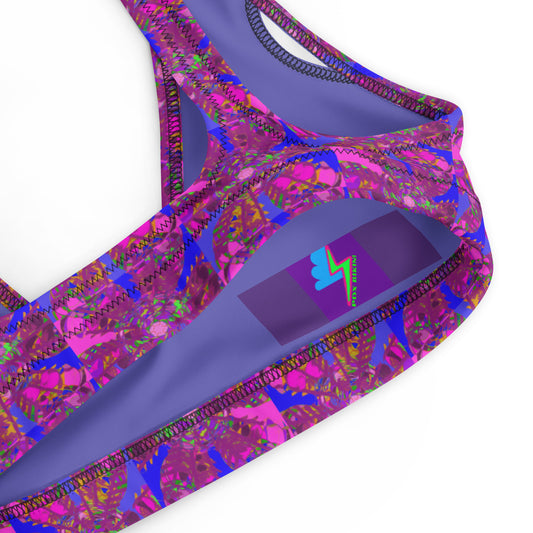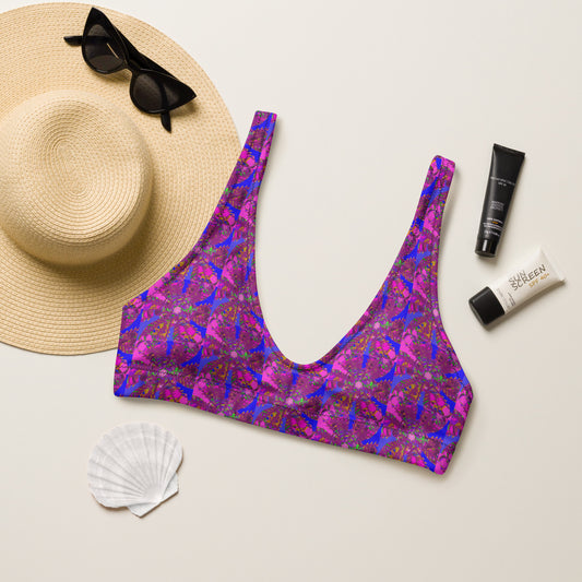 Vivid purple and indigo geometric pattern recycled sporty bikini top