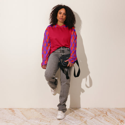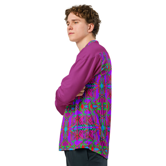 Recycled hockey fan jersey in fun vivid pattern