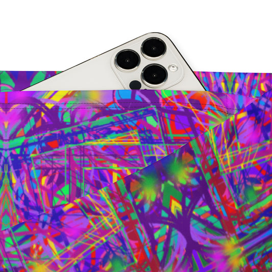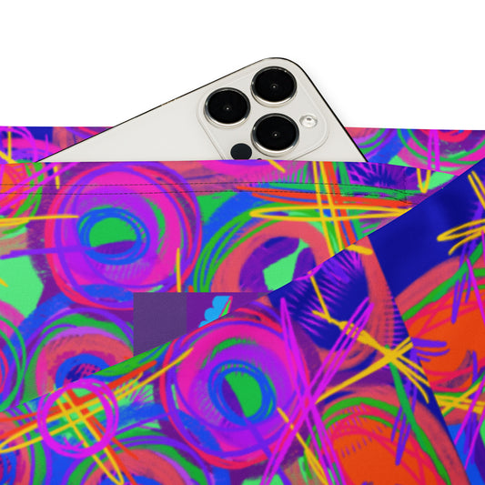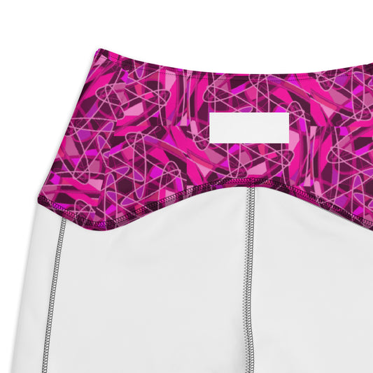 Recycled crossover leggings with pockets in vibrant pink geometric colors